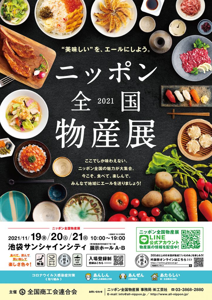 全国各地の名産品や特産品を大規模に展示・販売する『 ニッポン全国物産展2021 』に3日間、出展することになりました。