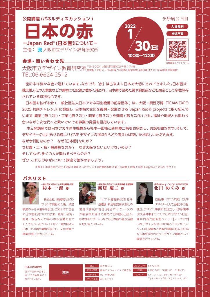 【活動情報】日本茜の公開講座in大阪市立デザイン教育研究所