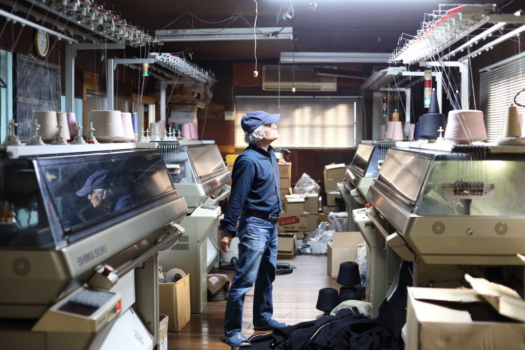 「日本茜を拡げる会」の拠点でもある泉北郡忠岡町で、50年以上ニットをつくりつづけている大城 盛文さん。