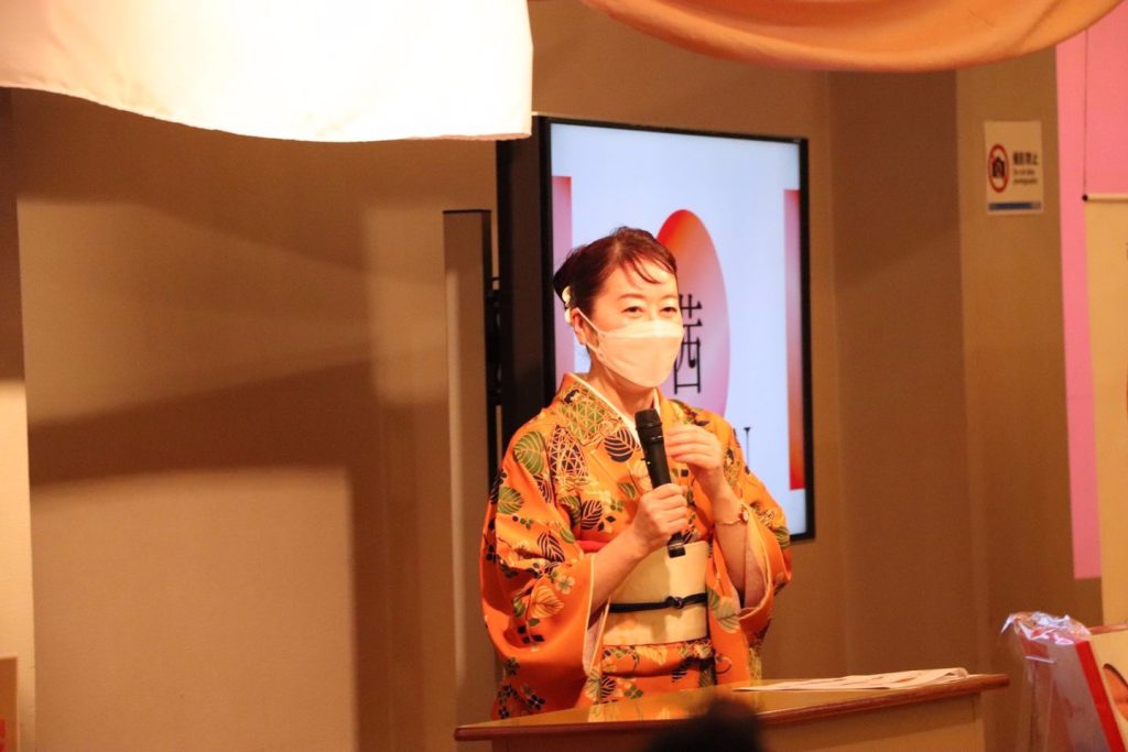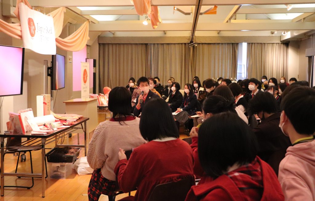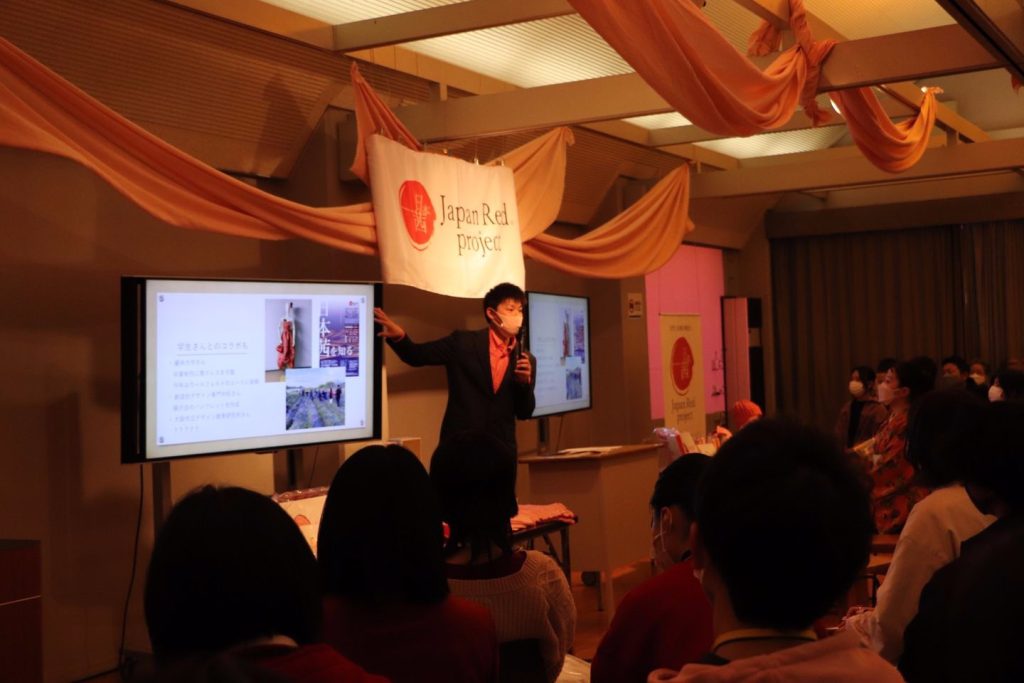 テーマは「日本の赤」ということで、カラーデザイン講師の北川めぐみ先生(株式会社aroy COLOR DESIGN 代表)と当社団の杉本代表理事・新居常務理事がパネルディスカッションを行いました。