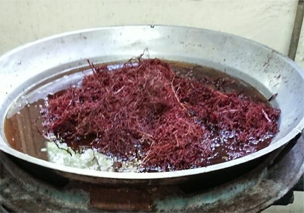 説明を受けた後は、染色の要とのなる染料を作っていきます。