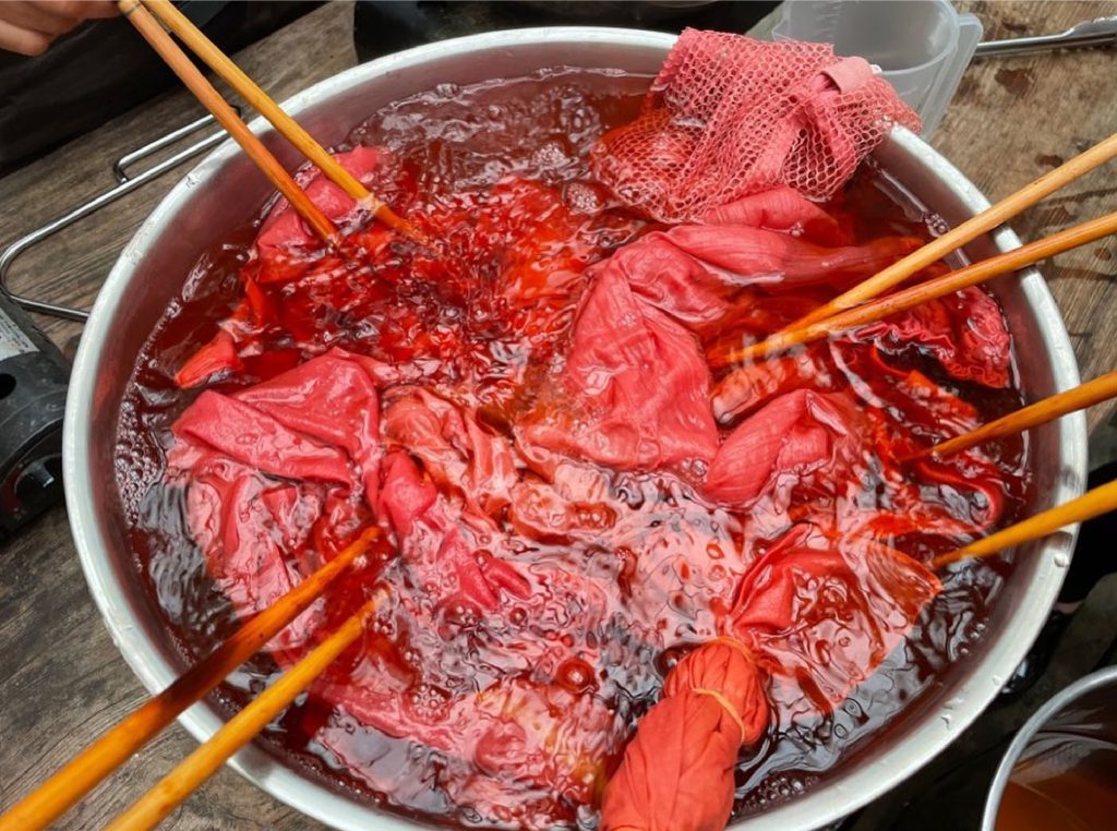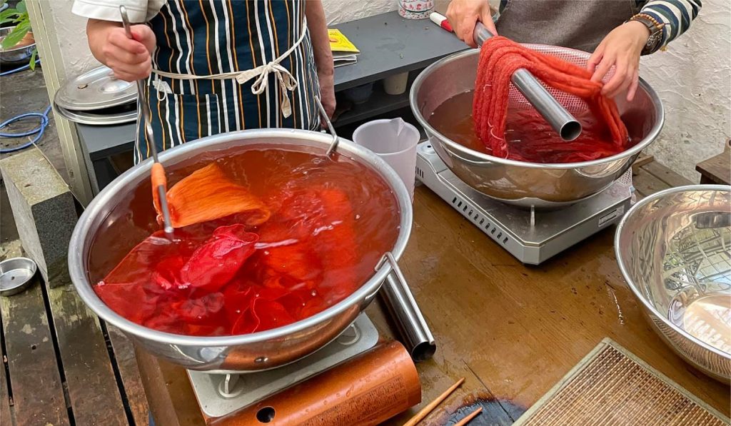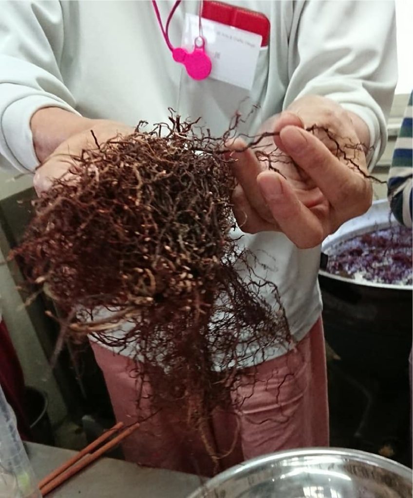 受講者の皆さんは日本茜の染色が初めてでしたので