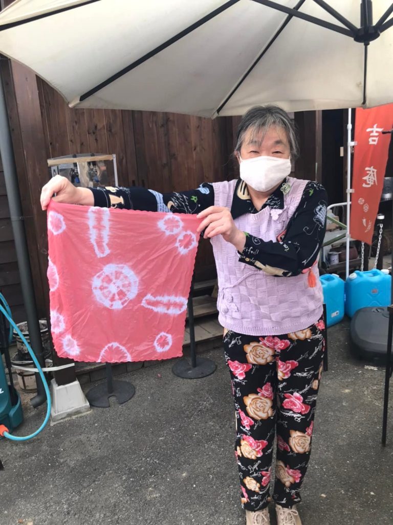 貴重な日本茜を使って皆さん思い思いに染色を楽しんでいますね。