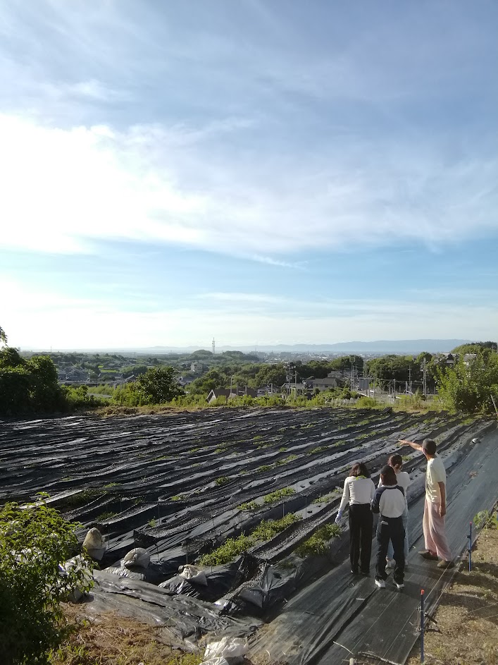 染色を体験した後は屋外に出て日本茜の栽培地を見学し、